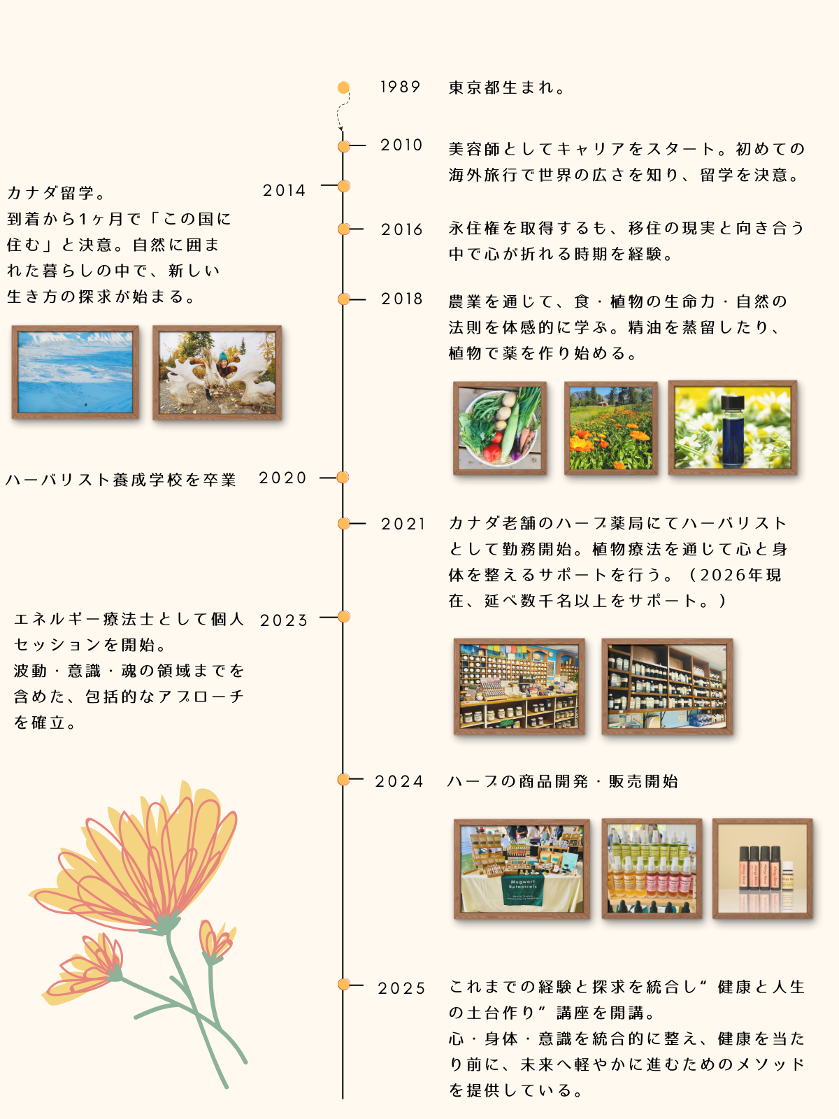 吉永 有希 ハーバリスト|エネルギー療法士|ウェルネスコーチ こんにちは!Yuukiです。カナダで文化も国籍も様々な数千名以上の方々の健康と人生に向き合ってきました。健康も充実も“当たり前“に。「あなたの本質に沿って生きることで人生が自然と整っていく」そんな在り方や視点をお届けしています。 Biography